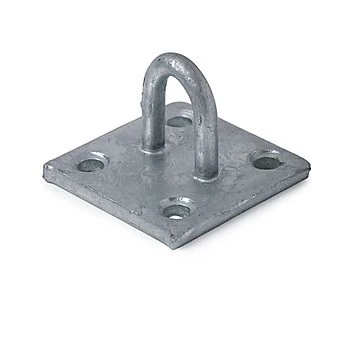 4mm thick metal staple on pre-drilled plate made with gavanised metal. Useful for fixing a chain or rope to walls, fences or posts.