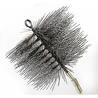 The 9 Inch chimney brush has stiff wire bristles that are idea for cleaning household chimneys. The wire bristle brush has a 3/8 inch female thread for easy coupling with fibreglass rods and pull rings.
