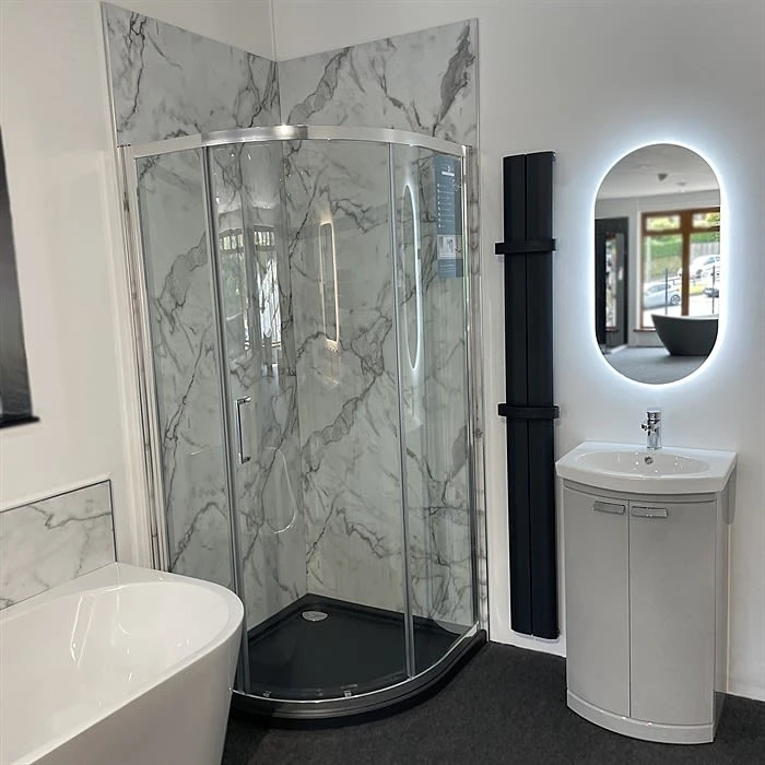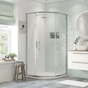 This modern and timeless quadrant Flex enclosure is from the RefleXion range by Bathrooms To Love. The minimalist design and polished silver finish of this shower enclosure makes it the perfect edition to any contemporary or a more traditionally styled bathroom. The sliding door enclosure has an opening of 475mm. A great feature of the Flex shower enclosure is that the sliding door is 8mm toughened safety glass whilst the shower side panel is 6mm. The glass of the enclosure is Easy clean making it easy to keep on top of cleaning and always having your shower enclosure look like new. The stylish shower enclosure has quick release rollers and hidden fixings.