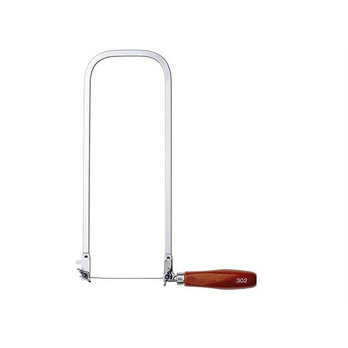 A fret saw with a flat plated steel frame and orange lacquered beechwood handle. Fitted with a blade ideal for wood working, the cutting depth on this fret saw is 300mm.