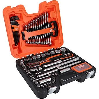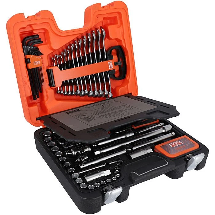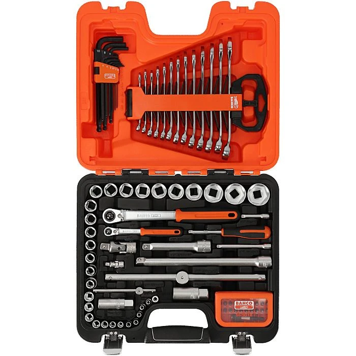 This set from Bahco features 96 high quality tools and accessories, all packaged in an excellent quality blow-moulded carry case with soft grip handle. The case is laid out so that everything included has a place, and the place is labelled with the applicable size of each.