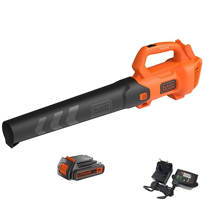 This garden leaf blower from the home and garden experts Black & Decker uses a high density 18 Volt Lithium-ion battery pack with 2.0 Amp-hour capacity. The motor drives an axial fan which is much newer technology than traditional blower fans, and is therefore much more efficient at providing high levels of airflow.