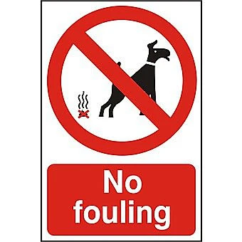 A self adhesive polycarbonate dog sign reading ‘no fouling’.