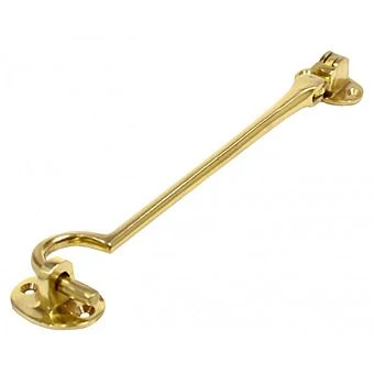 A polished brass cabin hook ideal for holding back doors, gates, cabinets, hatches and much more. Designed for silent operation and no rattling.