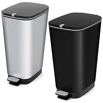 Available in silver or black, these pedal bins have contemporary styling that allows them to fit into any modern home. Unlike with most pedal bins, the manufacturer (KIS) has put some thought into the design, and have added a small rubber handle to allow you to lift the lid manually if desired. The rim of the lid has a rubber seal that is effective at holding in bad odours. The bin measures 45cm wide by 29cm deep by 61cm tall. The foot pedal of this bin can be slid in, out of the way, if it is not going to be used.