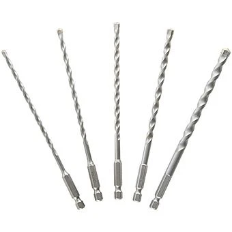 This 5 piece set of drill bits which each measure 152mm in length, with 100mm of usable length. They have a quick-change 1/4″ hex shank making them easy to swap with drop-n-load bit holders. The drills bits are capable of drilling through multiple different materials including timber, plastic, concrete, masonry and more. The drill bits are 4mm, 5mm, 5.5mm, 6mm and 8mm diameters.