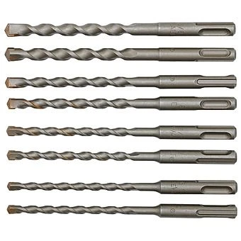 A set of eight high quality drill bits from DeWalt that have SDS-Plus shanks allowing them to be used in most rotary hammer drills on the market today. The pack includes 2 each of 6mm, 7mm, 8mm and 10mm bits, the most commonly needed drill bit sizes. Each bit measures 160mm overall, with 95mm working length available. The bits have carbide tipped heads that have two cutting edges, which carry down into a twin flute helix that effectively removes dust with minimal requirement to remove the bit.