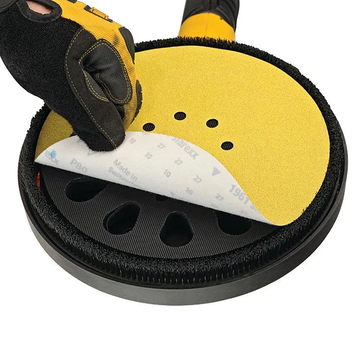 This drywall sander from DeWalt has a 225mm backing pad with high dust efficiency which removes more debris than standard backing pads. It has a telescopic handle which can be adjusted to the desired length. The brushless variable speed motor provides the user with greater control in all applications. This sander has a lock on switch for reduced user fatigue when sanding larger areas. It also has built in ToolConnect allowing connection to your other tools i.e an extractor so they both run in tandem.