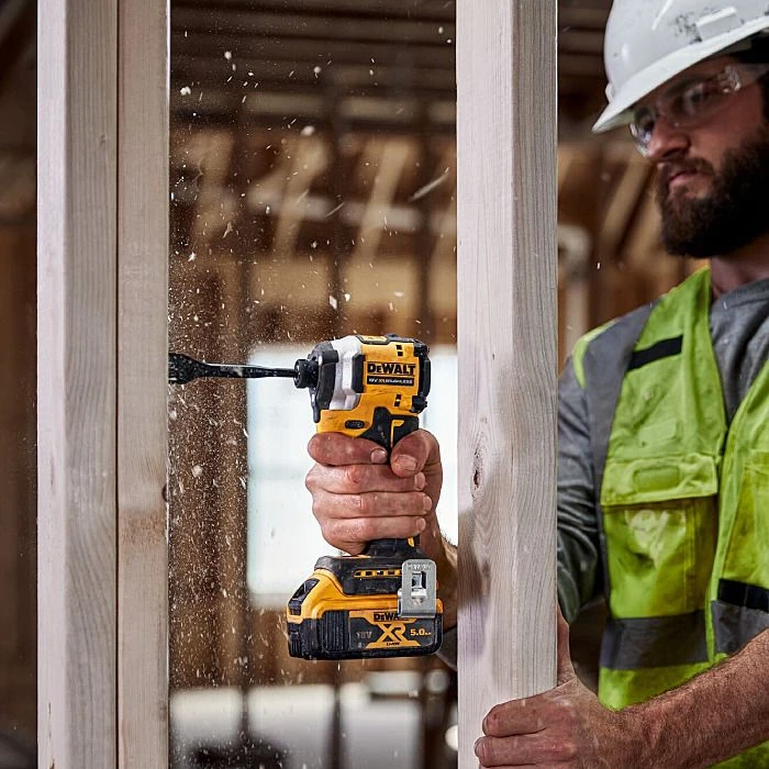 This impact driver boasts many of the same specifications as the previous generation impact driver, the DCF887. That is, except the dimensions. It uses a new latest gen brushless DC motor that has a massively reduced footprint, plus a shorter impact mechanism. This allows it to measure just 100mm front to back, compared to 135mm of the previous model. Once you hold the new DCF850 you will agree that it gives a great feel, bringing the tip of the bit closer to your hand. This version of the tool is supplied without batteries or charger, letting you get a hold of the bare unit without needing to fork out for another battery, charger and case if you already own all the kit.