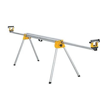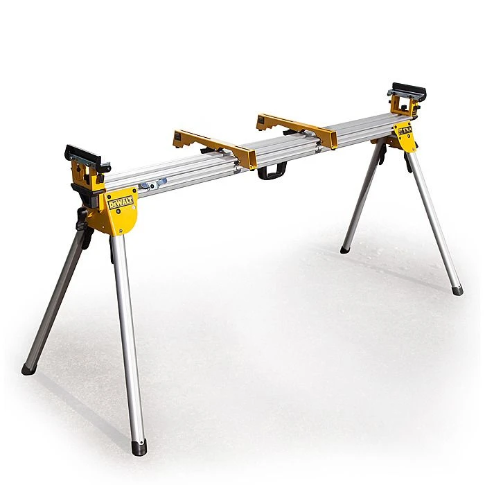The DeWALT DE7023 mitre saw stand is capable of accommodating all DeWALT mitre saws and the vast majority of other major brands with similar measurements. The DE7023 is a robust, solid, and lightweight aluminium construction with folding legs for easy transportation and easy setup when on the move. When folded out it has a 1.7 metre beam that can be extended to 3.83 metres to support large lengths of timber for cutting. The DE7023 is ideal for use around the work site because of its versatility and robustness and is also ideal for a keen DIY enthusiast’s home workshop.