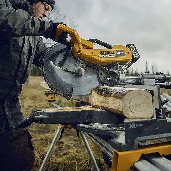 Introducing the DeWalt DHS780T2 54V Mitre Saw – the latest innovation in cordless power tool technology and the newest addition to the iconic DeWalt 54V FlexVolt range. This brand new sensational mitre saw is a class above the rest and features revolutionary technology which allows you to use the saw as either a CORDED OR CORDLESS power tool.