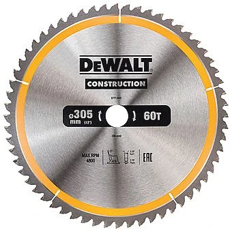 The DeWalt DT1960 305x30mm circular saw blade has a tough 3.0mm thick kerf, sharpened carbide teeth and a 60 tooth configuration that delivers powerful, fast and effective cutting in a variety of timber. The circular saw blades carbide teeth are capable of cutting into rough timber with embedded nails. The DT1960 is best suited to fine finish cutting applications where cross or rip cuts of timber are visible to the eye.