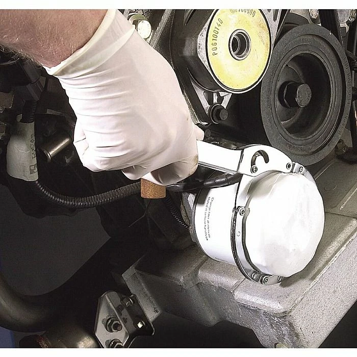 Draper 10784 100mm Oil Filter Wrench Quality wrench manufactured from heavy guage pressed steel hardened, tempered and matt chrome plated finish. Automatic action clamping ring has serrated inner surface for secure grip. Fits most oil filters. When ordering please quote: RGL Code (DRA10784)
