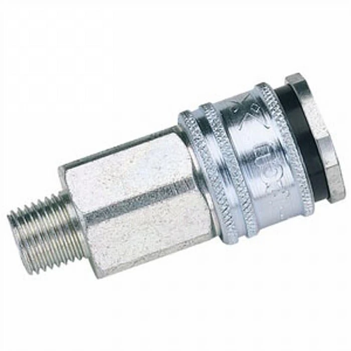 Standard male 1/4″ thread coupler for heavy duty high flow applications, designed to connect to popular European adaptor profiles sucj as Cejn, Rectus etc. The 1/4″ male coupler is zinc passivated to improve upon corrossion and rust resistance. Manufactured from steel for extreme strength and durability and tested to over 1 million cycles.