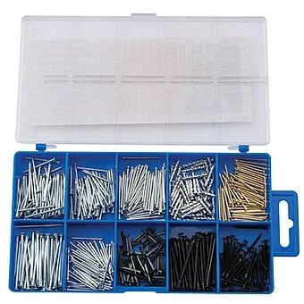 Suitable for a large range of DIY projects, this tray of various pins and small nails are all high quality. The set includes ten different types of pins or nails such as panel pins, square twist nails, lost head nails, ring nails and more.