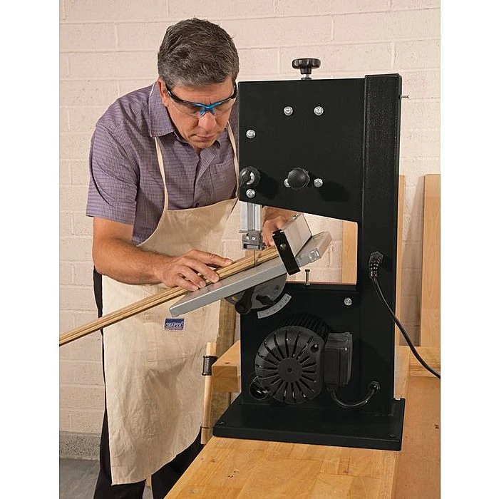 This two-wheel bandsaw is capable of making a maximum width of cut of 200mm, and can be set to a maximum cutting height of 80mm. It uses a reliable induction motor which has an input power of 250 Watts (approximately 1/3HP). The bandsaw is fitted with a steel table that measures 290mm square, giving you a reliable flat surface to cut over. The table is also capable of bevelling up to a maximum angle of 45 degrees, very useful for a large range of joinery cuts. As with many Draper machines, a full range of spare parts is available to order, and the tool comes with a 12 month guarantee, giving you piece of mind that you’re getting a machine that will last.