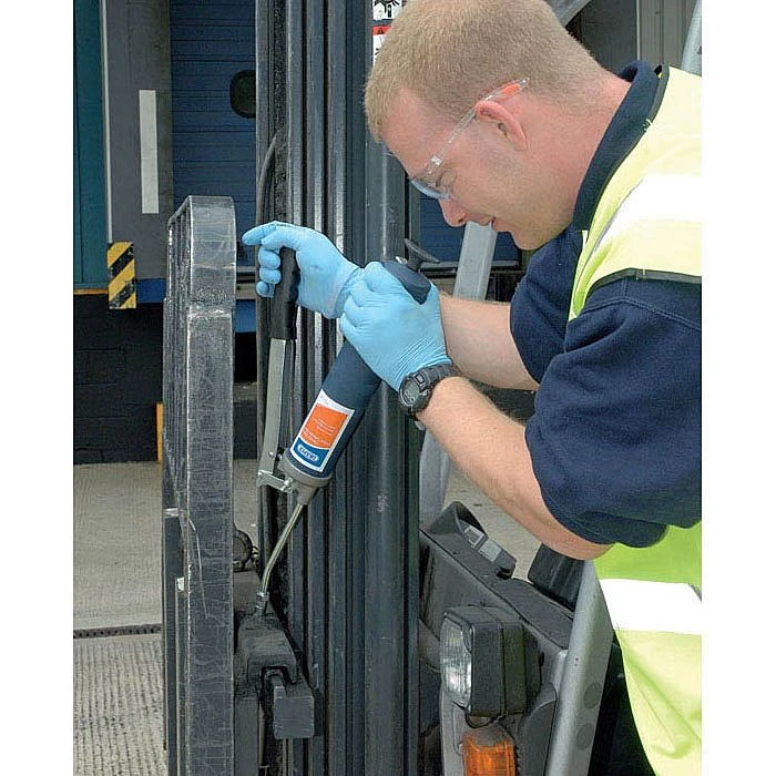 For bulk loading with stiff, medium or heavy grease for agricultural, automotive or industrial applications. Heavy duty spring, plunger assembly and air release valve. Complete with delivery tube and hydraulic connector. Side lever action. Suitable for cartridge, suction and bulk loading. Safe working pressure 62Mpa (9000 psi). Threaded 1/8″ BSPT. Display carton. DRAPER 500CC HEAVY DUTY LEVER GREASE GUN