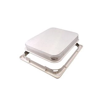An injection moulded polypropylene loft access trap with polystyrene insulation. This push up access trap features twin latches and an anti wind uplift mechanism at the opposite end to prevent the trap door from becoming dislodged if there is severe wind gusting.