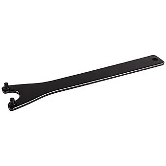 A newer design pin spanner designed for use with Makita small and medium corded and cordless angle grinders. It allows you to easily remove the locking nut holding the grinding disc on.
