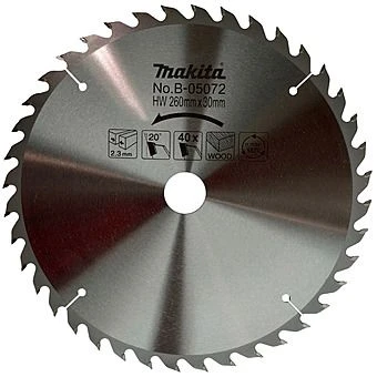 A circular saw blade designed with table saws in mind such as the MLT100 & 2704N. It has a diameter of 260mm and a bore of 30mm with 40 teeth for excellent material removal speed while providing a high quality finish.