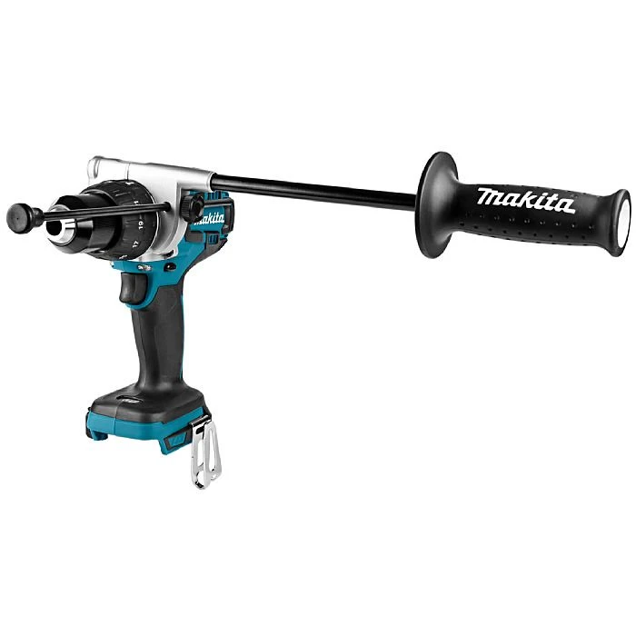 A high performance multi-role power tool that allows you to drill into masonry, steel, timber, plastic and much more. It also excels at screwdriving with 21 different torque levels that can be set with an adjustment ring behind the excellent keyless chuck. The torque level can also be locked out to maximum to allow as much power as possible when drilling into tough materials like hardwood and masonry. The drill comes with an adjustable side handle that is actually longer than the height of the drill which gives you the extra leverage needed to hold the drill steady as you take advantage of its incredible torque. The side handle also has a built-in quick-adjust depth stop so there’s no more need to tape your drill bits! The body is 25mm shorter than previous generations of combi drill allowing for use in tighter spaces. The DHP481 has two mechanical gears allowing for a faster speed with lower torque or higher torque with slower speed, and for even finer control the trigger uses a pressure sensitive switch for variable speed.