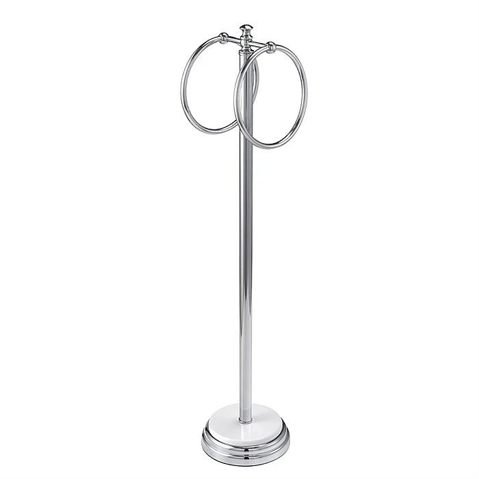 - Freestanding double towel rings on white raised bar