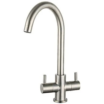 A premium quality kitchen tap. The hot and cold levers are operated around a smooth quarter-turn motion for easy water flow control and mixing. These taps will operate on a relatively low minimum pressure of just 0.5 Bar. The spout swivels smoothly around, and has a reach of 171.6mm from the tap hole, with spout height of 245mm and total height of 336.5mm. This contemporary design and brushed steel finish will be your new favourite part of your kitchen.
