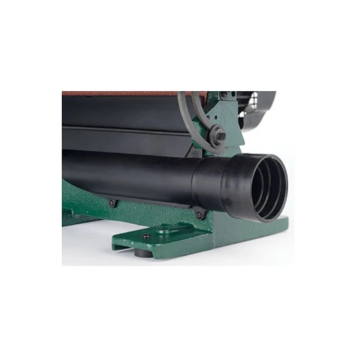 With a heavy duty cast iron body, this traditional style disc sander takes a 12 inch or 305mm diameter disc. It is easy and safe to use thanks to the safety guard on the upwards side of the disc. There is also a hand brake that can be pressed to slow the disc down quickly, letting you then walk to another station in your workshop quicker. Another safety feature with this disc sander is the power switch. The on switch is hidden under a cover to prevent accidental starting, and this cover doubles as the emergency stop button. In the event of a power cut in your workshop electrical supply, which is then restored, the machine will not start on its own again, and instead requires the off button to be pressed first. There is a very large cast iron table on the sander which you can tilt with ease thanks to the rack and pinion gear system.