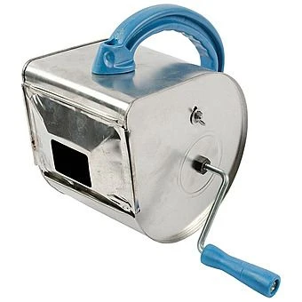 This hand operated machine allows you to get a Tyrolean render on the exterior of buildings. This is an extremely cost effective way of covering unsightly brick or render and gives the building a pleasing texture. The machine has a spring steel comb inside with a 210mm diameter that picks up the cement mix as you crank the handle and flings it out of the opening at the wall. The texture can be controlled by adjusting the tension on the bar.