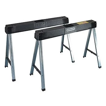 A pair of fantastic quality sawhorses from Stanley that allow you to work on long stock or even use a door or other sheet material to create a temporary desk or work surface. The best feature of these sawhorses is that the legs first fold together, then fold into the top, then the compact sawhorses clip together for extremely easy transportation compared to other sawhorses. The sawhorses also have rubber on the bottom of the aluminium legs to form non-slip feet, and the plastic top is strong yet shouldn’t damage material as easily as metal would.