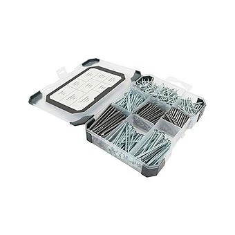 With approximately 650 nails and pins supplied in a handy clear organiser case, this set is perfect to allow you to have a range of different fixings for general maintenance, repair and DIY projects. Includes panel pins, oval nails and round wire nails which are bright finished carbon steel.