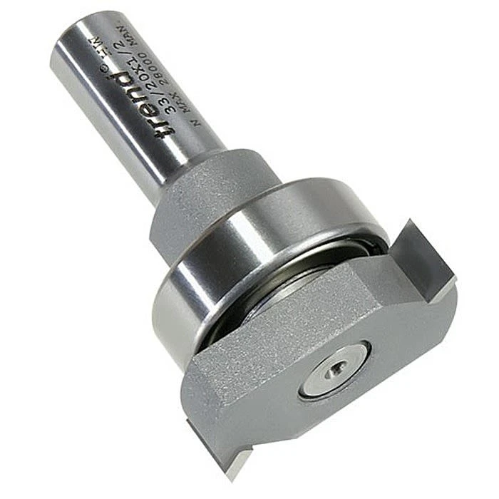 This Trend router cutter is used for the grooving of door edges to receive 10mm intumescent strip. The arbor can be lowered or raised to give a wider groove for 20mm strip. Choose alternative bearings shown above to suit other thicknesses of intumescent strip.