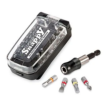 This well presented case of 14 torsion screwdriver bits and Trend Snappy compatible quick release bit holder includes Phillips, Pozidriv, Slotted, Hex and Torx bits, which can all easily be identified by the different coloured rings. They are all 25mm in length and have a torsion zone to reduce breakages in high torque applications.
