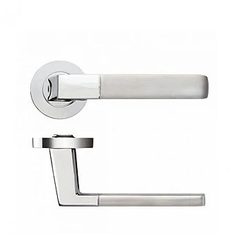 This stylish Minerva Door Handle on Rose by Zoo will look great in any home or commercial premisis by giving an incredible modern look. The spring lever handles os made from a high quality solid zinc alloy and dual finished in a satin brushed chrome and polished chrome plate. The handle features a cranked shank and leading edge flat bar lever design, combined with the fixings hidden behind the screw on round rose it gives a clean and very attractive appearance.